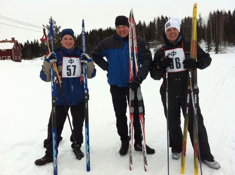 Mieshiihtäjät Ajon mestaruuskisoissa 2.3.2013: Pauli Marjakangas, Harri Kallioinen ja Kusti Manninen