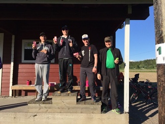 Ajon katuviestijoukkue 2015. Joona Häkkinen, Santeri Kouhia, Konsta Kallioinen, Maria Kurvi, Eva Farigu, Oona Nyyssönen, Anni Kurvi ja Niina Kurvi