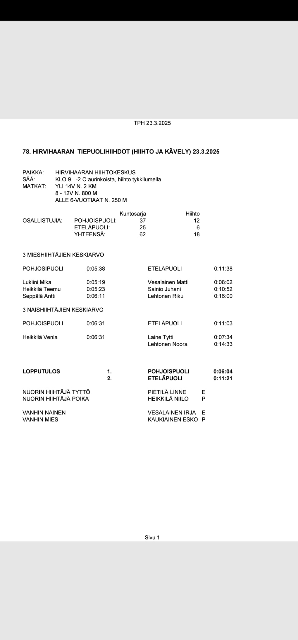 Tiepuolihiihtojen voiton vei tänä vuonna pohjoinen.